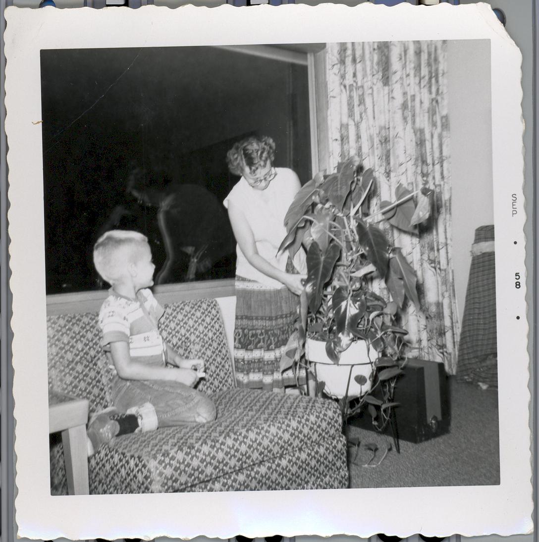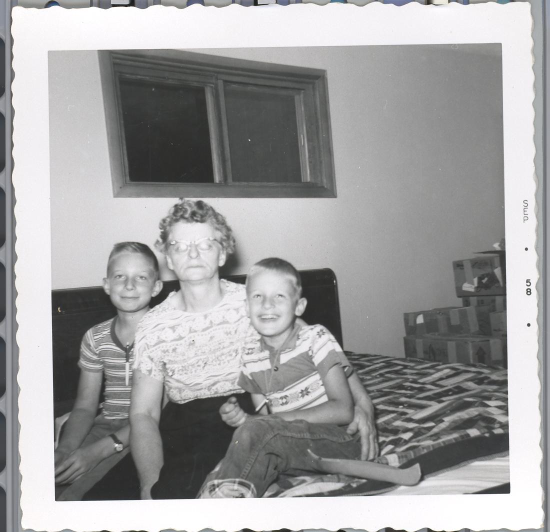PicId: scan1013 Group: Misc Where: Circle, Churubusco, IN When: 07-01-1958 Subject(s): Ernest Allen Hershey, III; Stephen Douglas Hershey; Pauline Clingerman(Grandma Polly Comments: Polly, Al & Steve getting ready to move to Detroit from Busco |