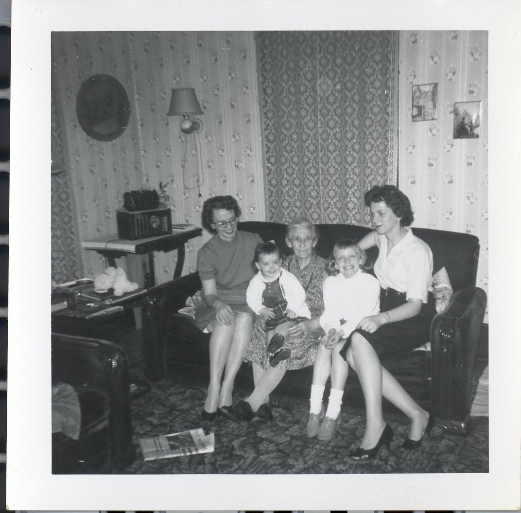 PicId: scan1135 Group: Misc Where: Cromwell, IN When: 07-01-1961 Subject(s): Ernest Allen Hershey, III; Stephen Douglas Hershey; Patricia Kay Hershey; Tamera Clingerman Imel; Grandma Clingerman Comments: In Grandma C's living room |