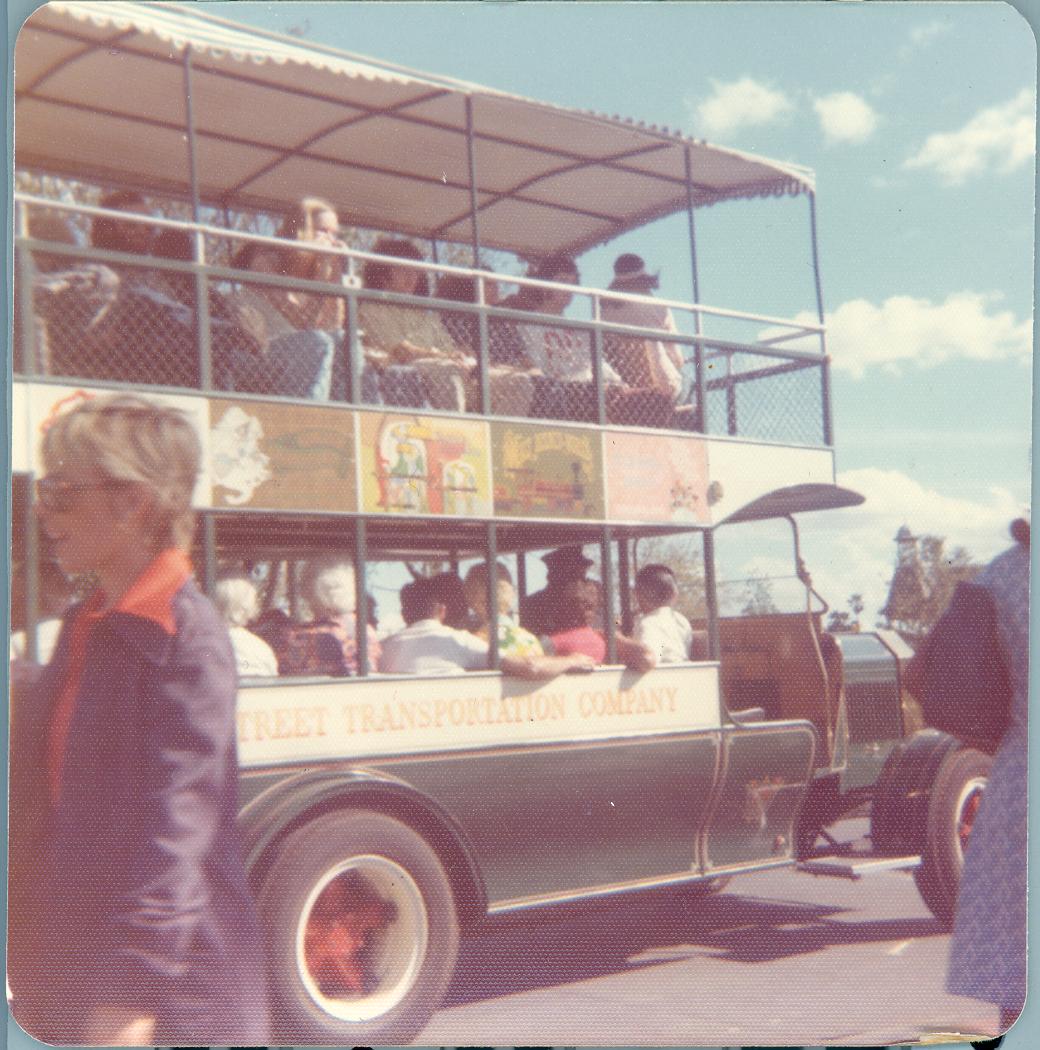 PicId: scan5061 Group: Trip, Florida Jan 1974 Where: Florida When: 01-15-1974 Subject(s): Unspecified Comments: Trolley that went around Disney World |