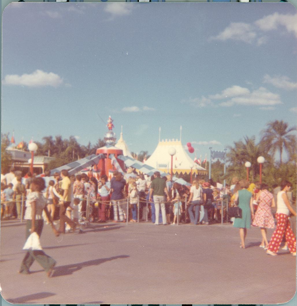 PicId: scan5070 Group: Trip, Florida Jan 1974 Where: Florida When: 01-15-1974 Subject(s): Unspecified Comments: Line for one of rides at Disney World |