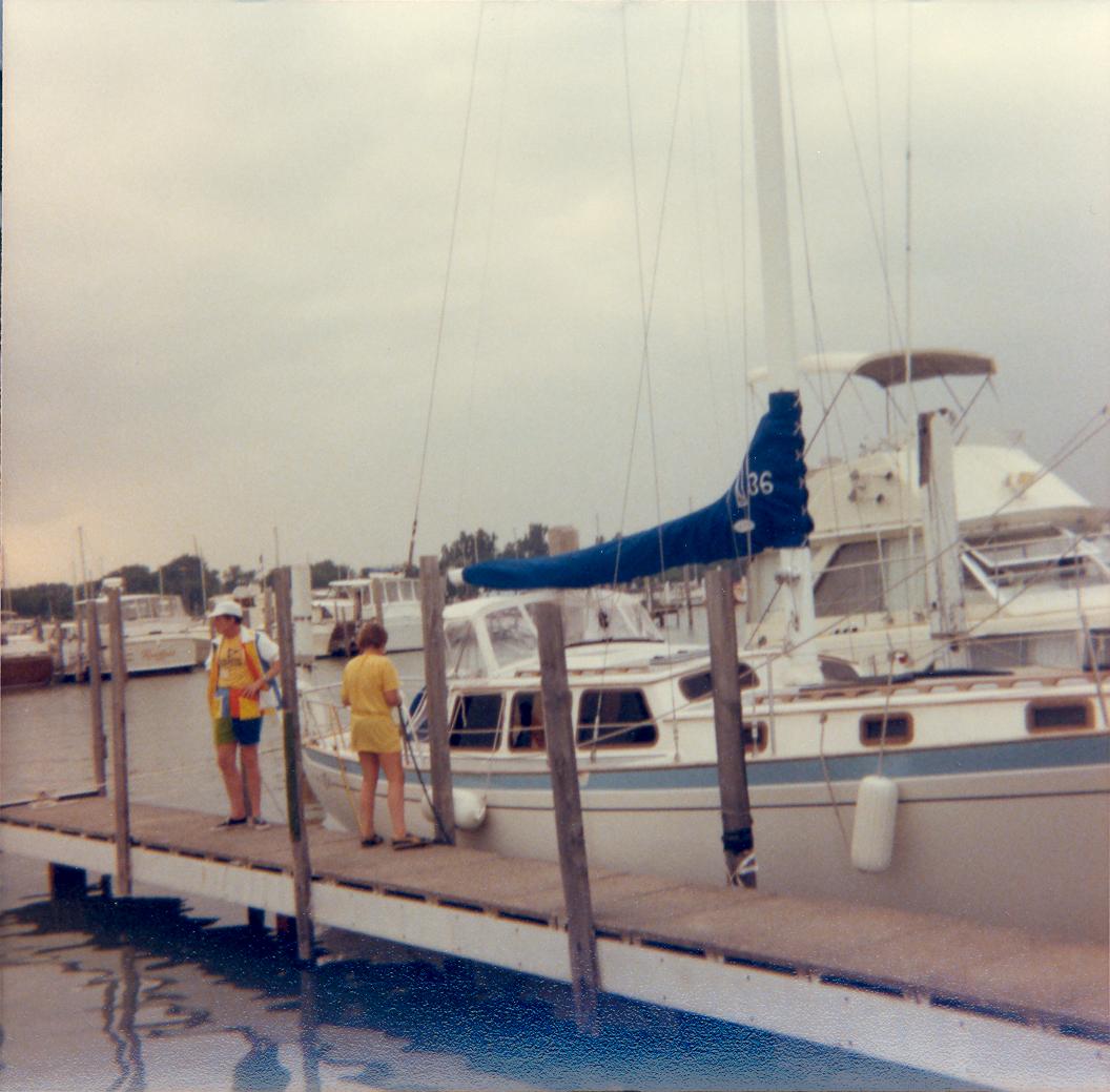 PicId: scan5360 Group: Album, Hersheys 1977-1979 Where: GPYC When: 07-04-1978 Subject(s): Ernest Allen Hershey, Jr. Comments: Dad waiting on dock while Drapers tie up boat |