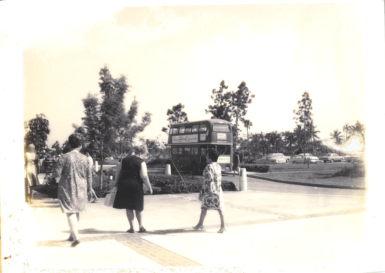 PicId: scan4021 Group: Album, Bahamas Trip April 1968 Where: Grand Bahama Island When: 04-18-1968 Subject(s): Unspecified Comments: Double decker bus. Across from International Bazaar. Shopping. |