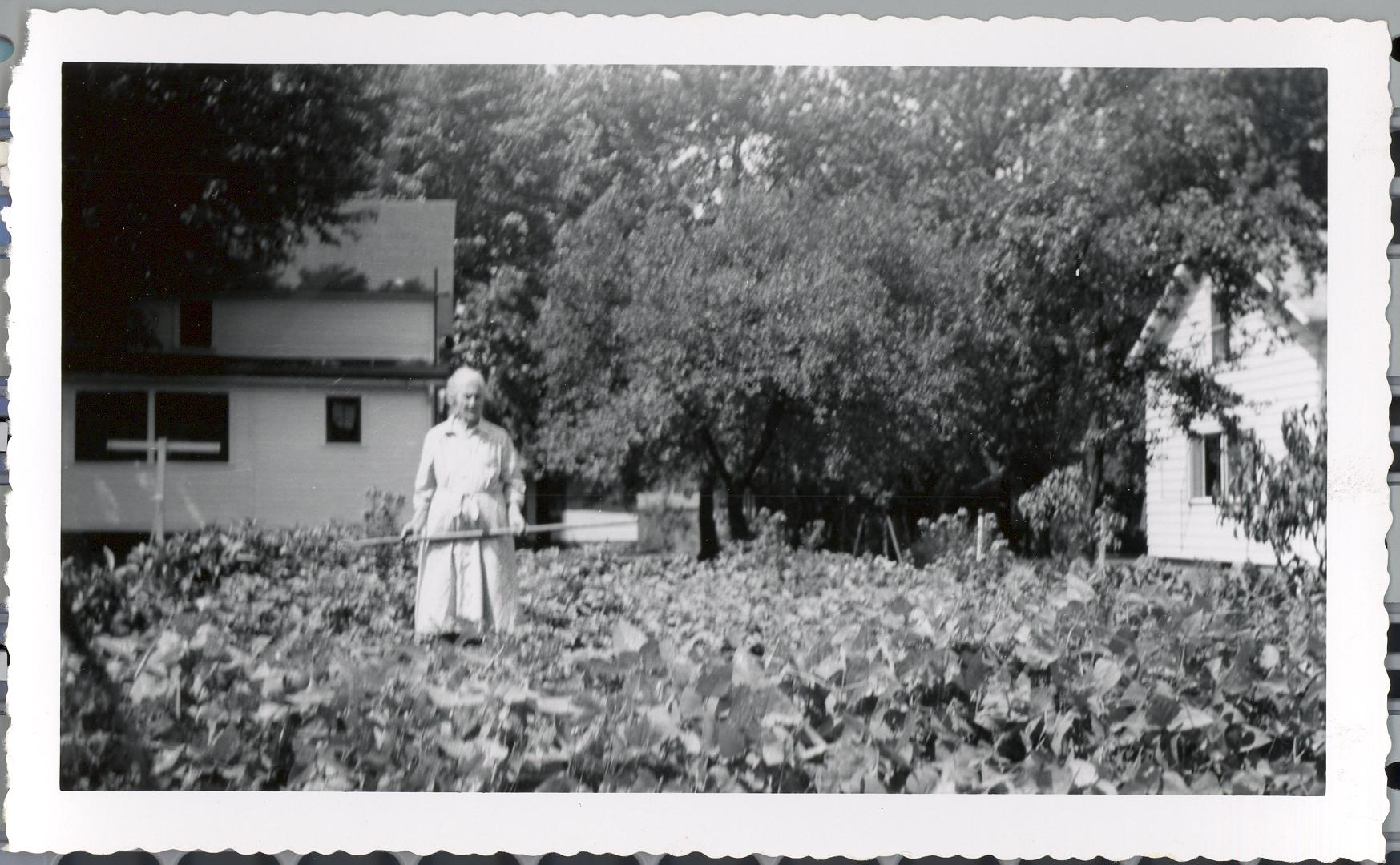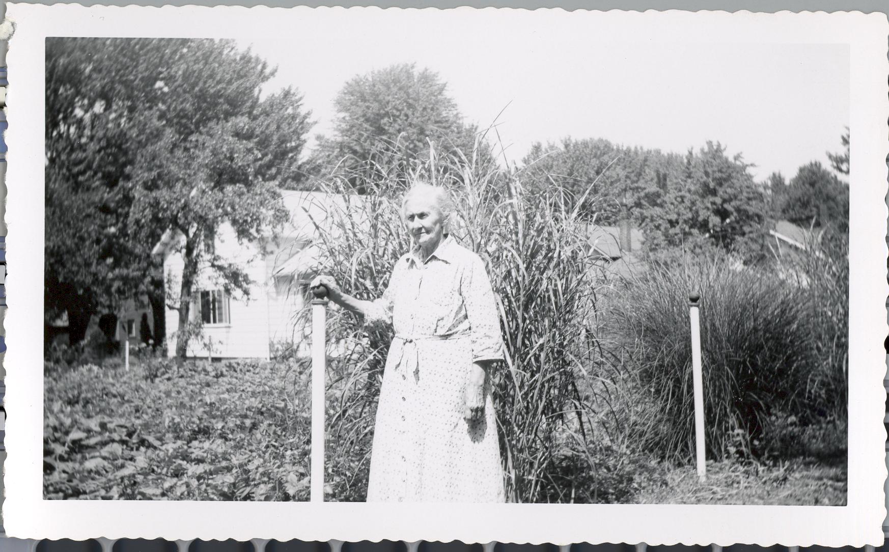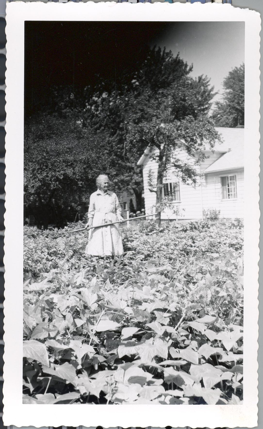 PicId: scan0103 Group: Misc Where: Grandma Clingerman's garden, Cromwell, IN When: 07-01-1955 Subject(s): Unspecified Comments: Grandma Clingerman in her garden; 83 yrs. old |