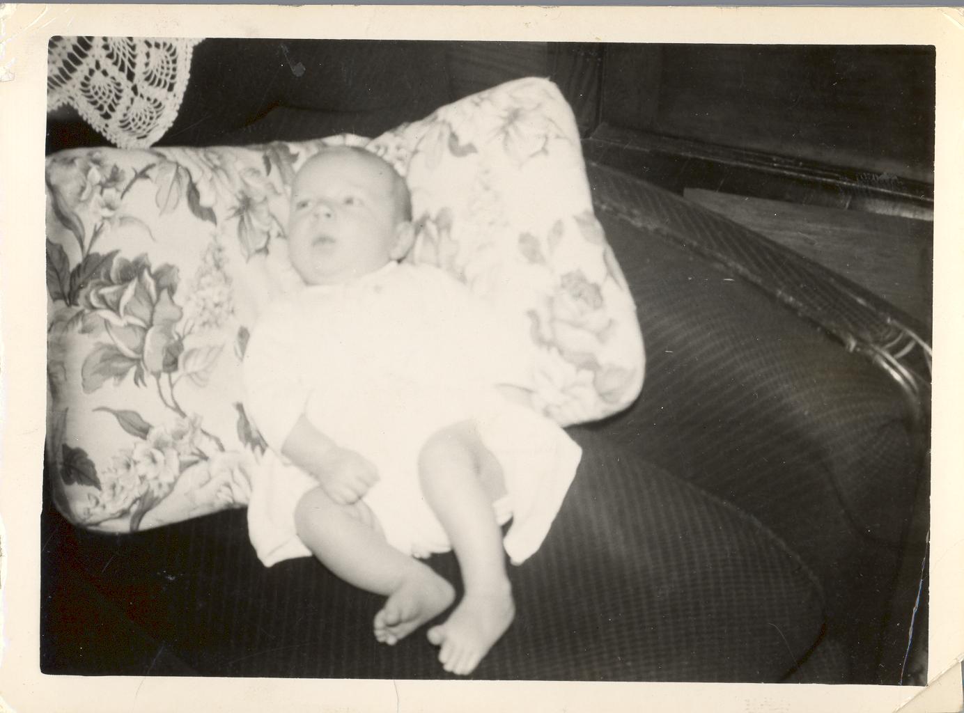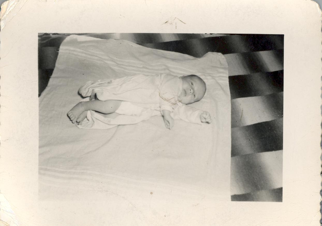 PicId: scan0014 Group: Misc Where: Grandma Polly's House, Churubusco, IN When: 07-15-1949 Subject(s): Ernest Allen Hershey, III Comments: Al 3 weeks old at Grand Dad Hershey’s for first checkup |