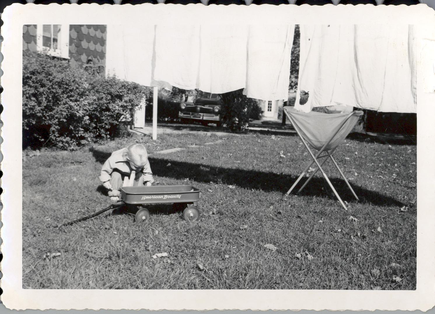 PicId: scan0048 Group: Misc Where: Grandma Polly's House, Churubusco, IN When: 07-01-1950 Subject(s): Ernest Allen Hershey, III Comments: Al at Polly’s at Busco (diapers hanging in background) |