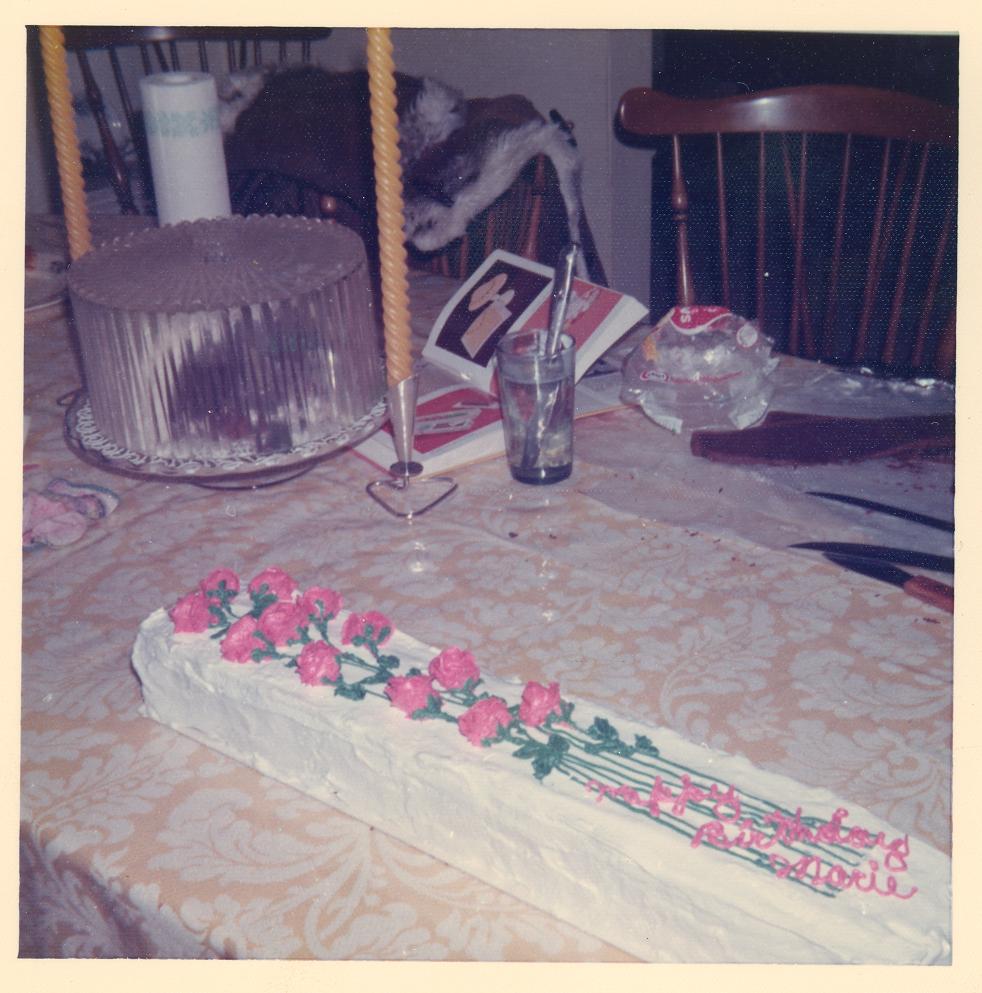 PicId: scan5486c Group: Album, Hersheys 1977-1979 Where: Grosse Pointe When: 07-01-1975 Subject(s): Unspecified Comments: Dozen roses made out of frosting on long cake that Mrs. Agnone and mom made for Marie Farbman's birthday. |