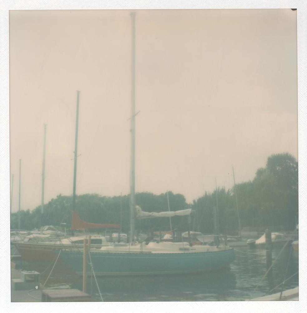 PicId: scan5150a Group: Album, Hersheys 1975-1977 Where: Grosse Pointe City When: 07-01-1976 Subject(s): Unspecified Comments: Quick I (25 footer sailboat) docked at City dock |