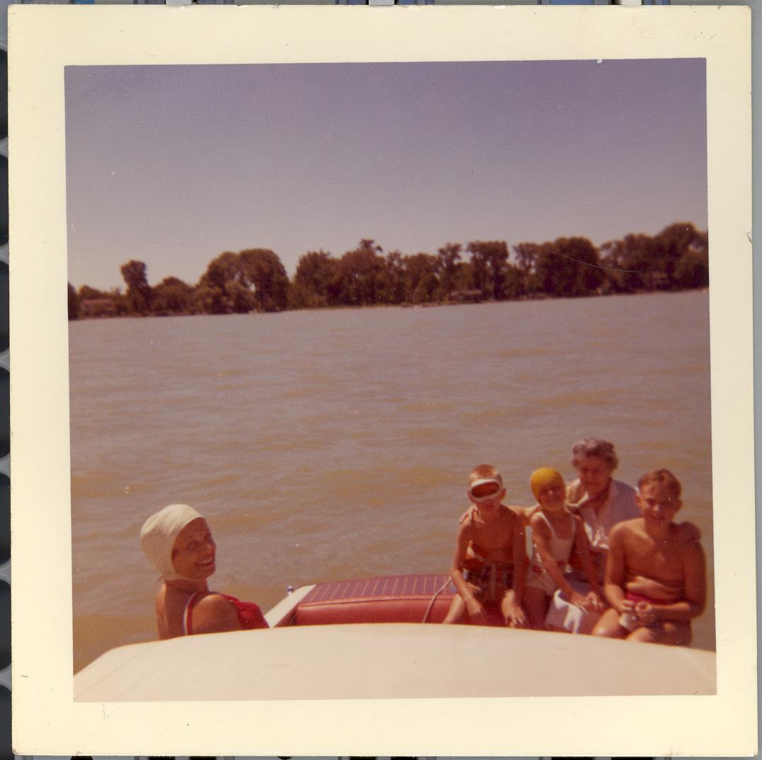 PicId: scan1069 Group: Misc Where: Grosse Pointe Park Park When: 07-01-1962 Subject(s): Ernest Allen Hershey, III; Stephen Douglas Hershey; Patricia Kay Hershey; Pauline Clingerman(Grandma Polly; Kathleen Kay Hershey Comments: On "Good Buy 11" at Lake St. Clair |