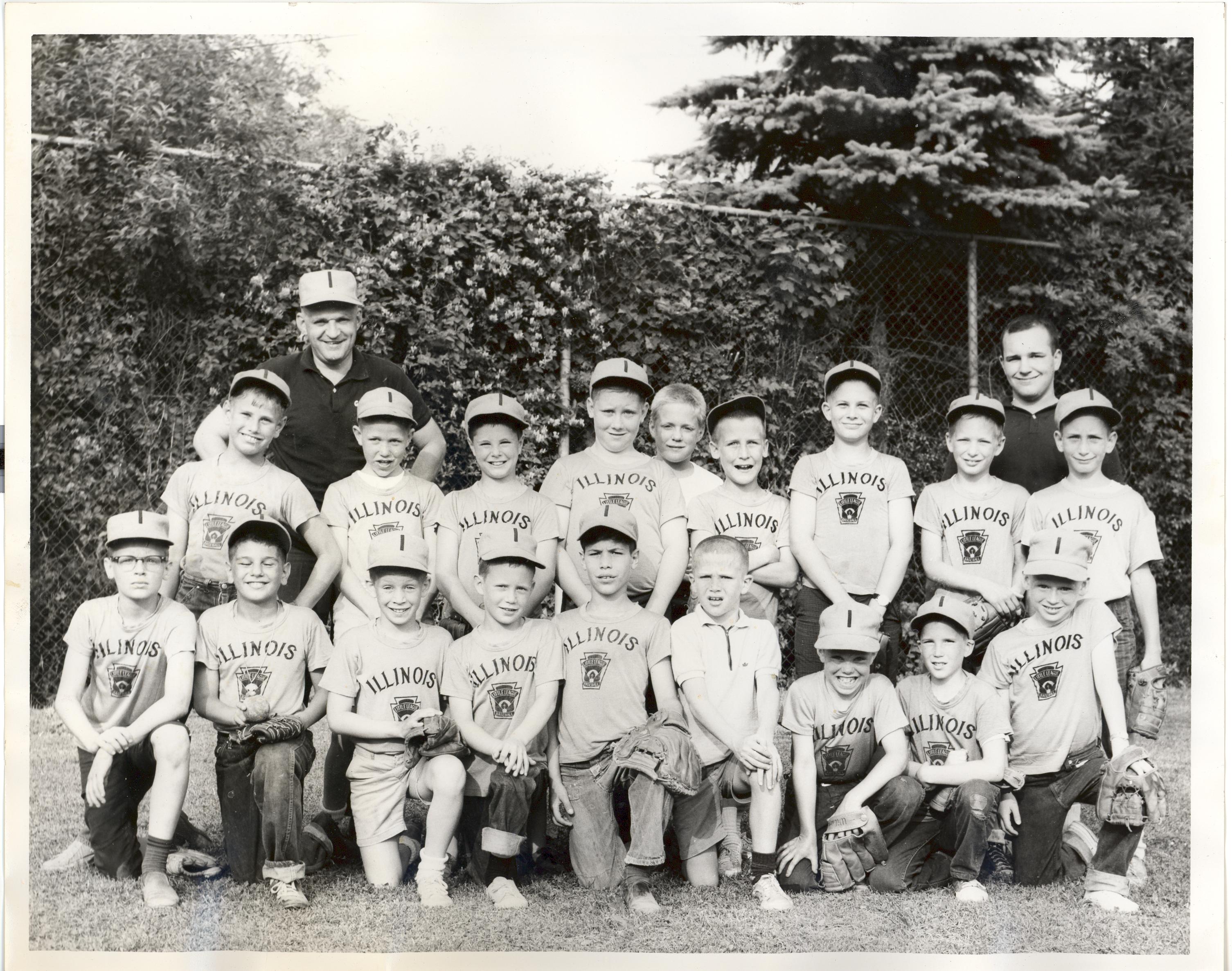 PicId: scan1214 Group: Misc Where: Grosse Pointe Park Park When: 07-01-1963 Subject(s): Stephen Douglas Hershey Comments: Steve is lst one on right on front row. He was one of the big pitchers on the Little League team. He and Tompkins boy argued all way home who was the winning pitcher one time. |