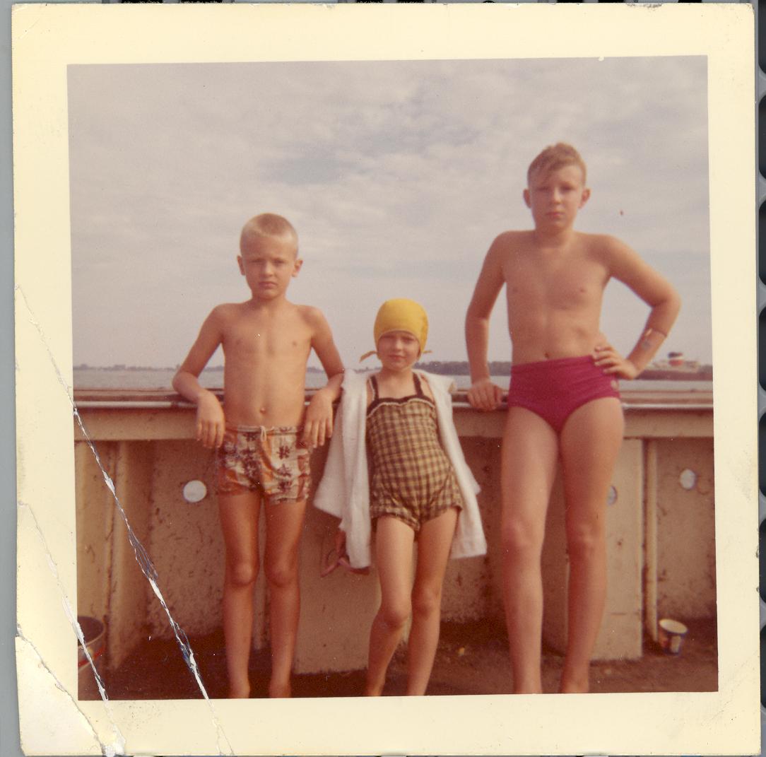 PicId: scan1283 Group: Misc Where: Grosse Pointe Park Park When: 07-01-1959 Subject(s): Ernest Allen Hershey, III; Stephen Douglas Hershey; Patricia Kay Hershey Comments: after swimming at the Park |