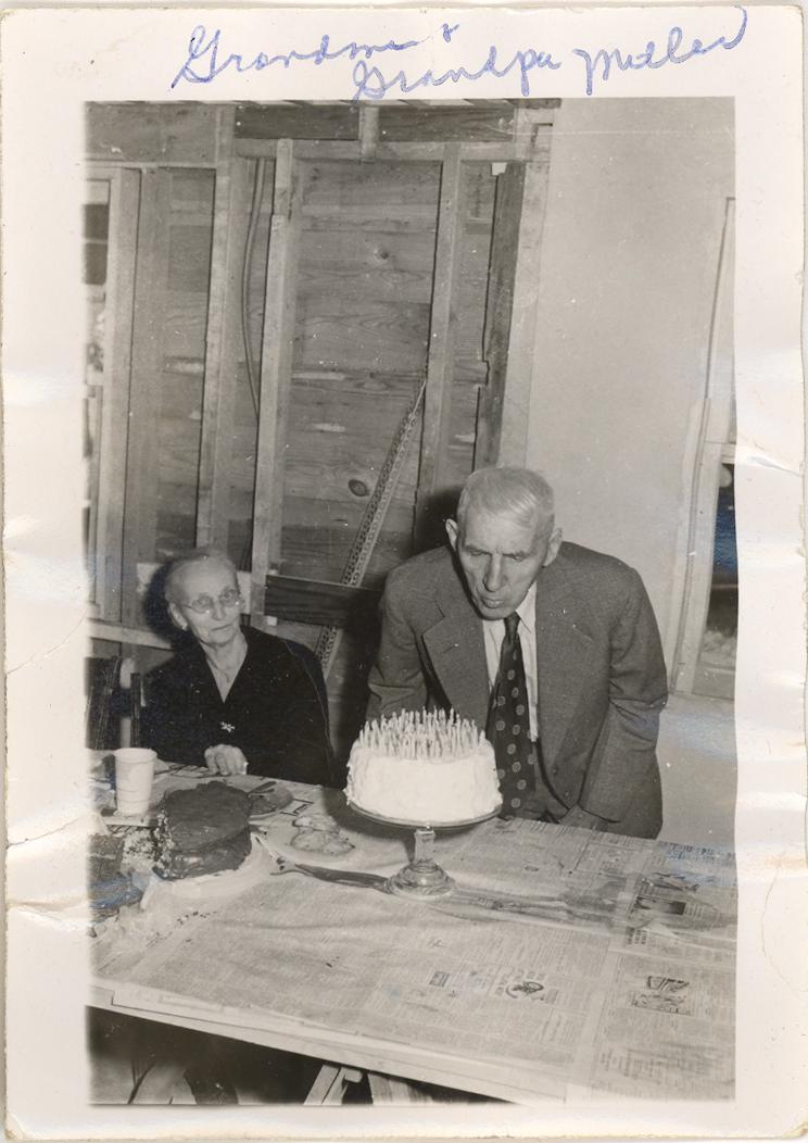 PicId: scan0074e Group: Misc Where: Indiana When: 09-15-1950 Subject(s): Grandma Miller; Grandpa Miller Comments: Grandma & Grandpa Miller; Grandpa’s birthday at Uncle Otto’s |