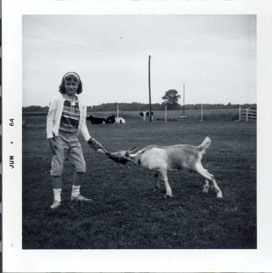 PicId: scan1270 Group: Misc Where: Indiana When: 07-01-1961 Subject(s): Unspecified Comments: Pat feeding goat |