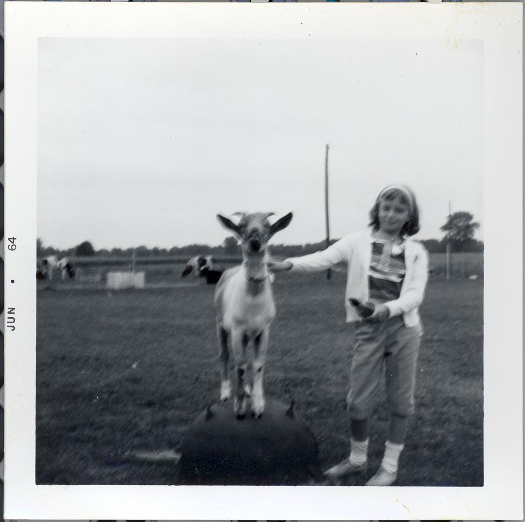PicId: scan1269 Group: Misc Where: Indiana When: 09-15-1961 Subject(s): Patricia Kay Hershey Comments: Pat and goat at Aunt Louise's |