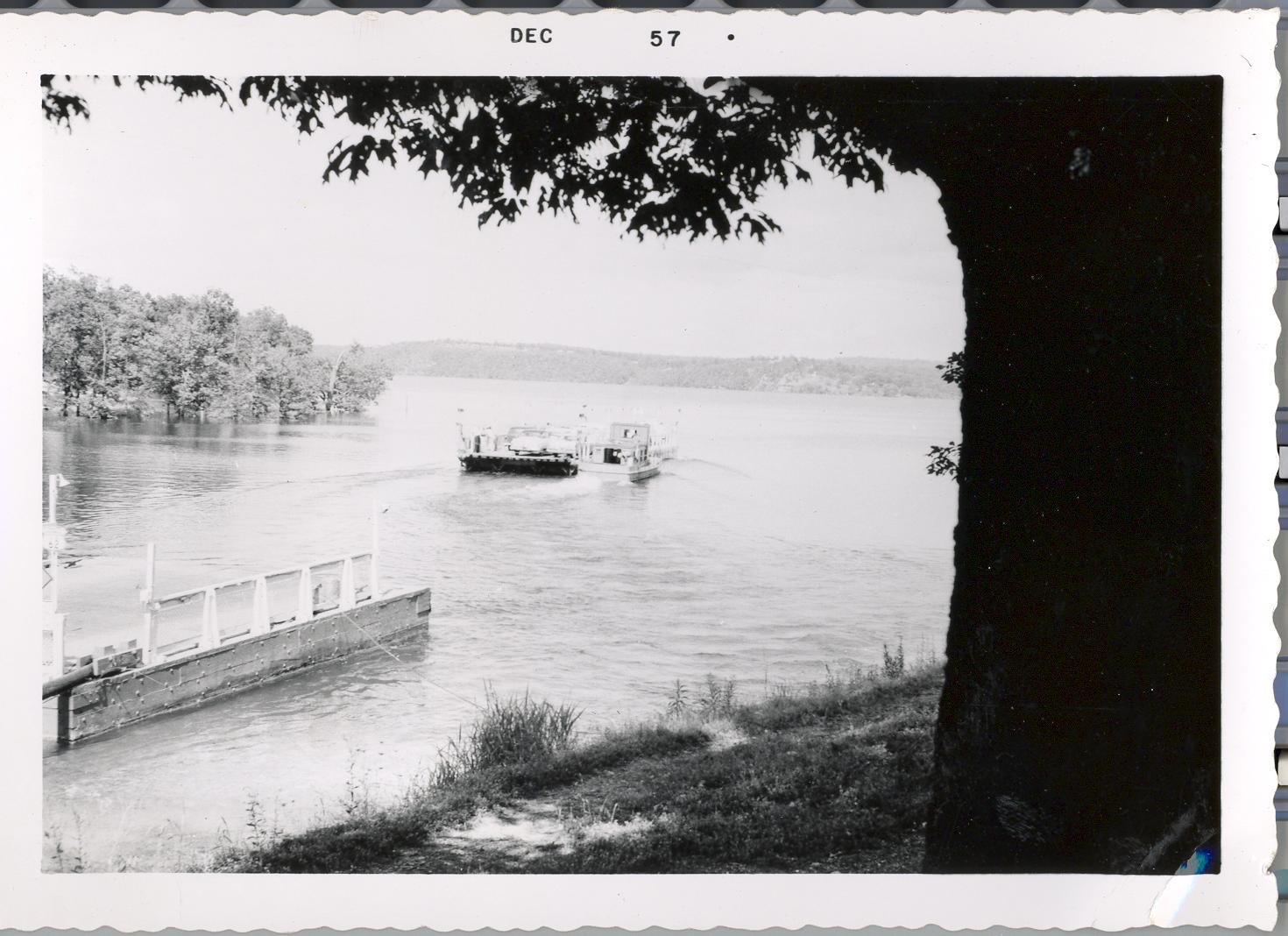 PicId: scan0167 Group: Trip, The Ozarks Where: Lake Norfork, The Ozarks, AK When: 08-15-1957 Subject(s): Unspecified Comments: Ferry boat on Lake Norfork; on vacation in Ozarks |