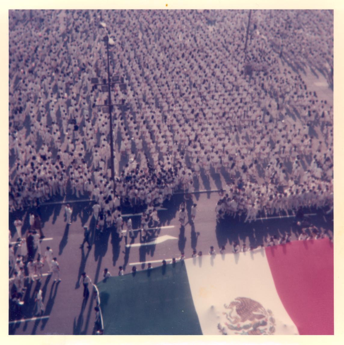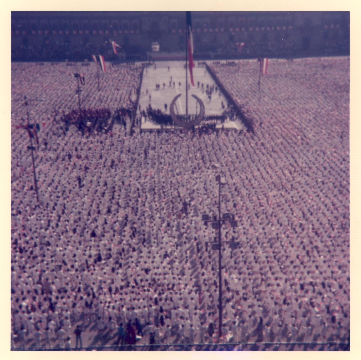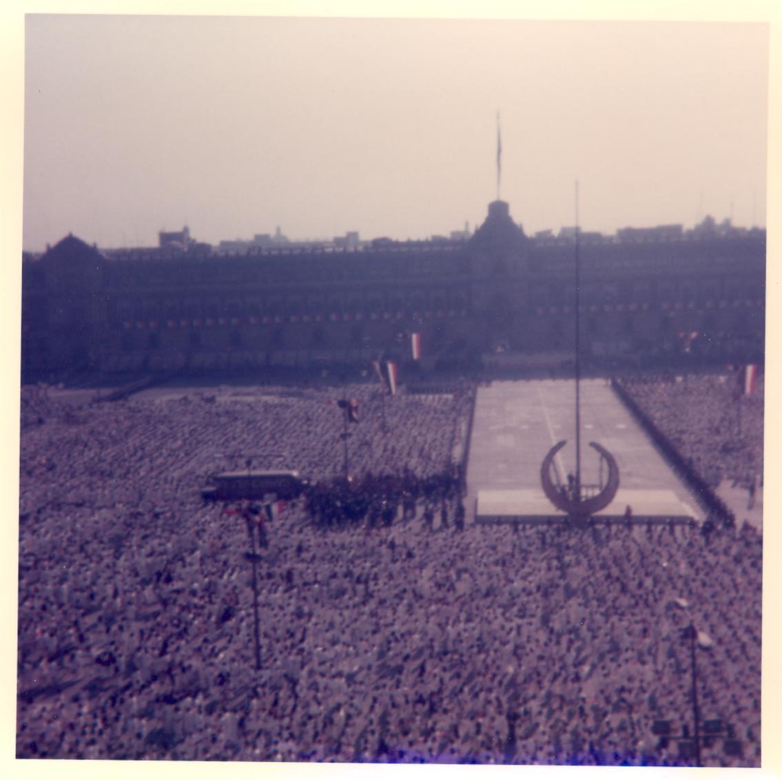 PicId: scan4234 Group: Album, Mexico Trip 1974 Where: Mexico City, Mexico When: 02-24-1974 Subject(s): Unspecified Comments: Flag Day deremony. Thousands of school children lined up in front of Nationale Palace. |