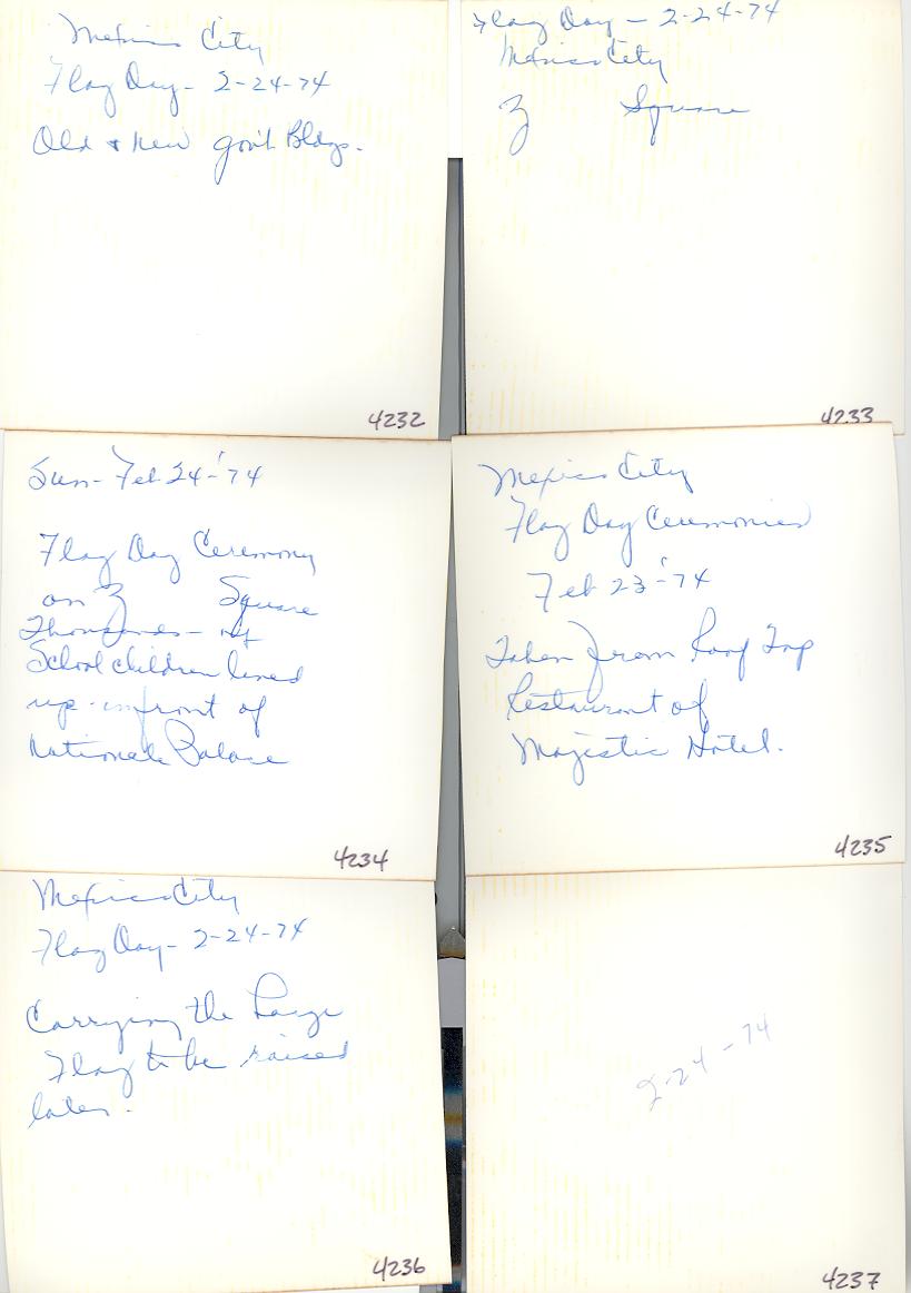 PicId: scan4238 Group: Album, Mexico Trip 1974 Where: Mexico City, Mexico When: 02-24-1974 Subject(s): Unspecified Comments: Explanation on back of previous pictures |