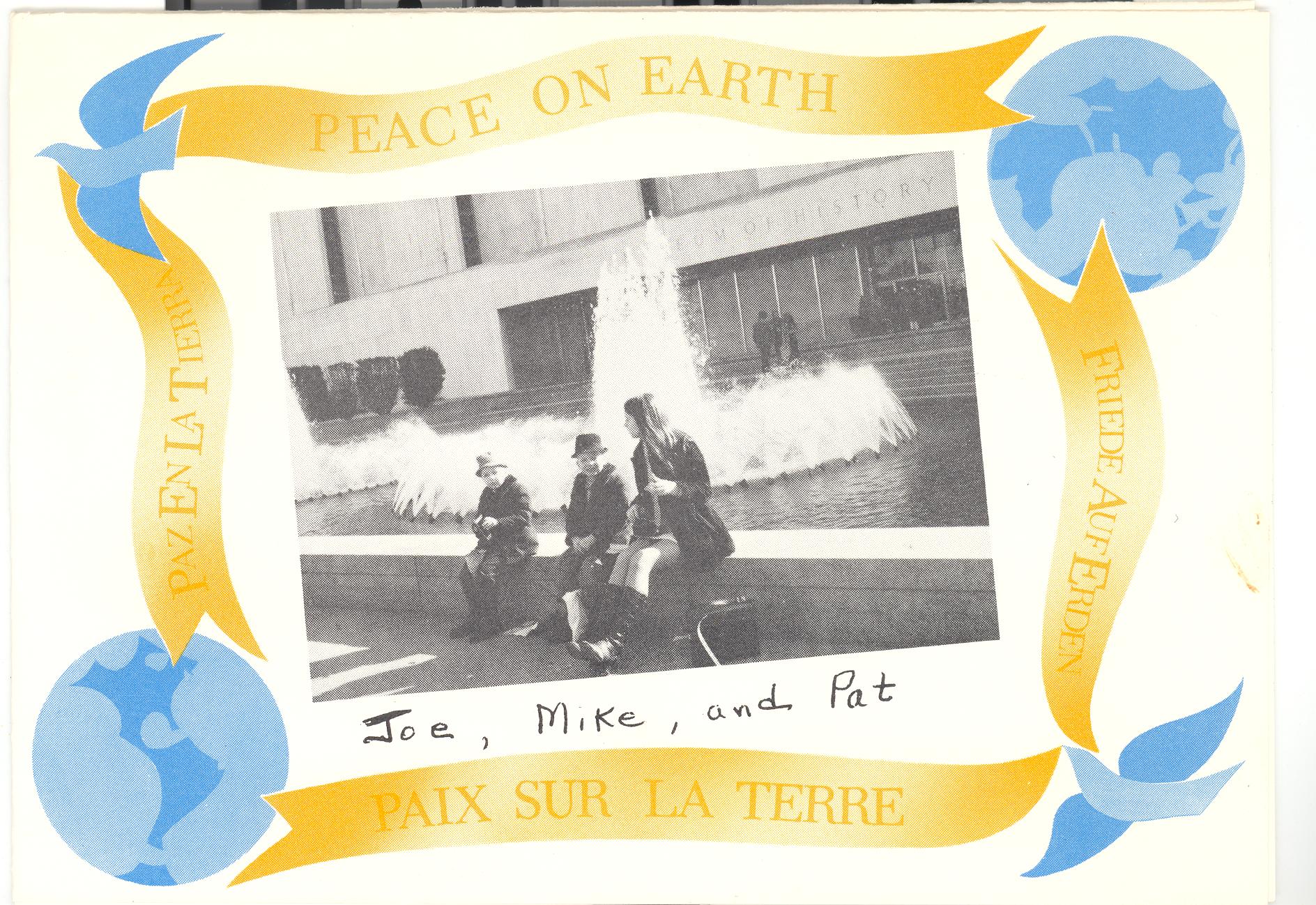 PicId: scan4102 Group: Album, Hersheys 1970-1972 Where: Washington DC When: 02-15-1971 Subject(s): Patricia Kay Hershey; Michael David Hershey; Joseph Raymond Hershey Comments: Pat had a sore throat and the flu during most of this trip and was not enjoying it as much as she would have if feeling good. This was the front of our Christmas card for 1971. |